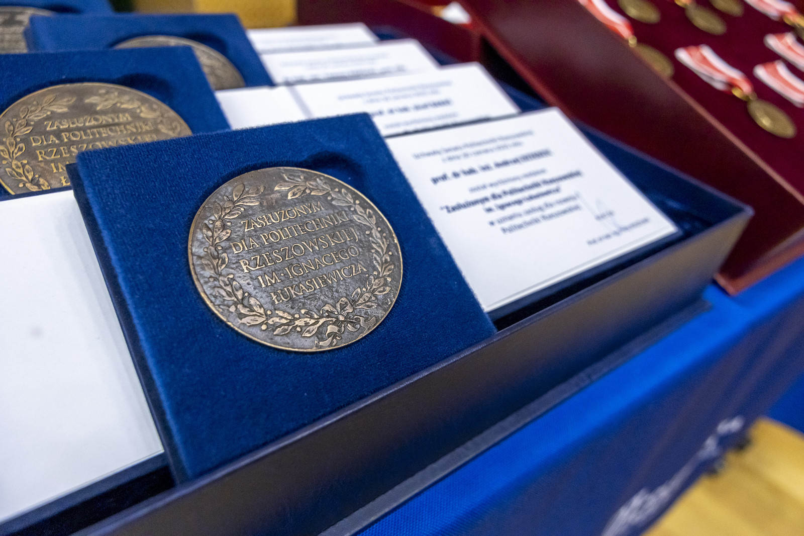 Podczas uroczystości wręczono również medale „Zasłużonym dla Politechniki Rzeszowskiej im. Ignacego Łukasiewicza”. Wyróżnienie to otrzymali: prof. dr hab. inż. Andrzej Dziedzic z Politechniki Wrocławskiej w uznaniu zasług dla rozwoju Politechniki Rzeszowskiej, prof. dr hab. Józef Banaś za długoletnią wzorową pracę naukową, dydaktyczną i organizacyjną, dr hab. inż. Tomasz Kopecki, prof. PRz za długoletnią wzorową pracę naukową, dydaktyczną i organizacyjną, dr inż. Anna Szlachta, prof. PRz za długoletnią wzorową pracę naukową, dydaktyczną i organizacyjną. Medale wręczył rektor prof. dr hab. inż. Piotr Koszelnik. Tę część uroczystości poprowadził prorektor ds. studenckich i umiędzynarodowienia dr hab. inż. Bartosz Miller, prof. PRz.
