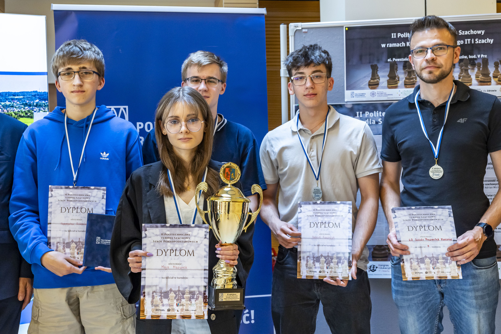 - szachownica nr 2: Radosław Kuras z II Liceum Ogólnokształcącego w Rzeszowie, Przemysław Różański z Liceum Ogólnokształcącego Sióstr Prezentek w Rzeszowie, Miłosz Mazurkiewicz z Zespołu Szkół Licealnych w Leżajsku,