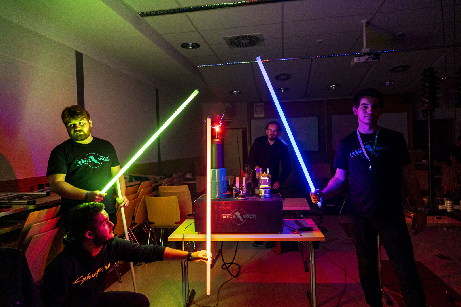 Najbardziej wyczekiwaną atrakcją Nocnych Spotkań z Nauką był „Teatr wysokich napięć”. Podczas spektaklu wykorzystany został jeden z największych w swojej klasie transformatorów Tesli. Był to niecodzienny widok kilkumetrowych wyładowań, które w rytm muzyki rozświetlały mrok.