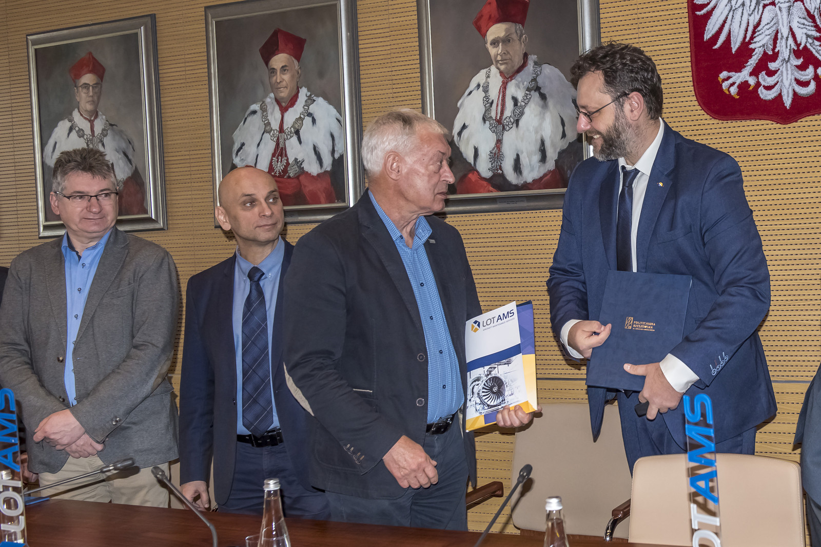 Umowę podpisali prof. dr hab. inż. Tadeusz Markowski, Rektor Politechniki Rzeszowskiej i Marcin Kwietniak, Dyrektor Biura Marketingu w LOT Aircraft Maintenance Services Sp. z o.o.