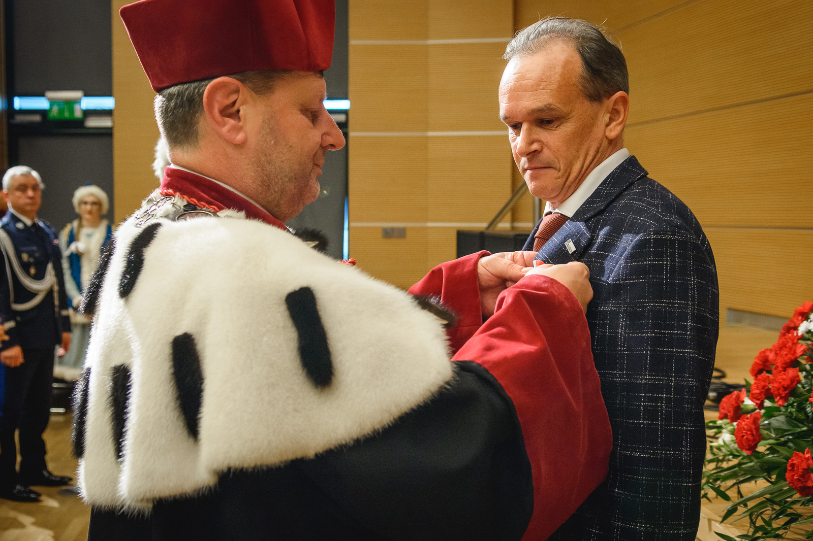 Odznaczenia wyróżnionym wręczyła wojewoda podkarpacki dr Ewa Leniart w towarzystwie rektora Politechniki Rzeszowskiej prof. dr. hab. inż. Piotra Koszelnika.