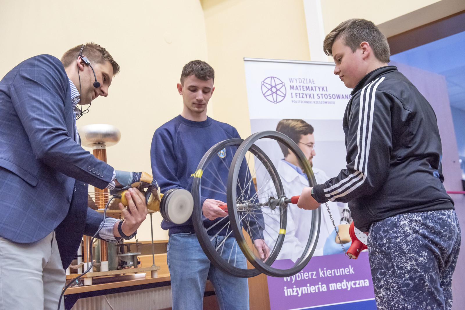 Atrakcyjne demonstracje wybranych praw i zjawisk fizycznych realizowane przez pracowników Politechniki Rzeszowskiej pozwoliły przybliżyć młodym ludziom – uczniom szkół podstawowych, gimnazjów czy też liceów te obszary wiedzy, z których zrozumieniem na co dzień mają na ogół duże problemy.